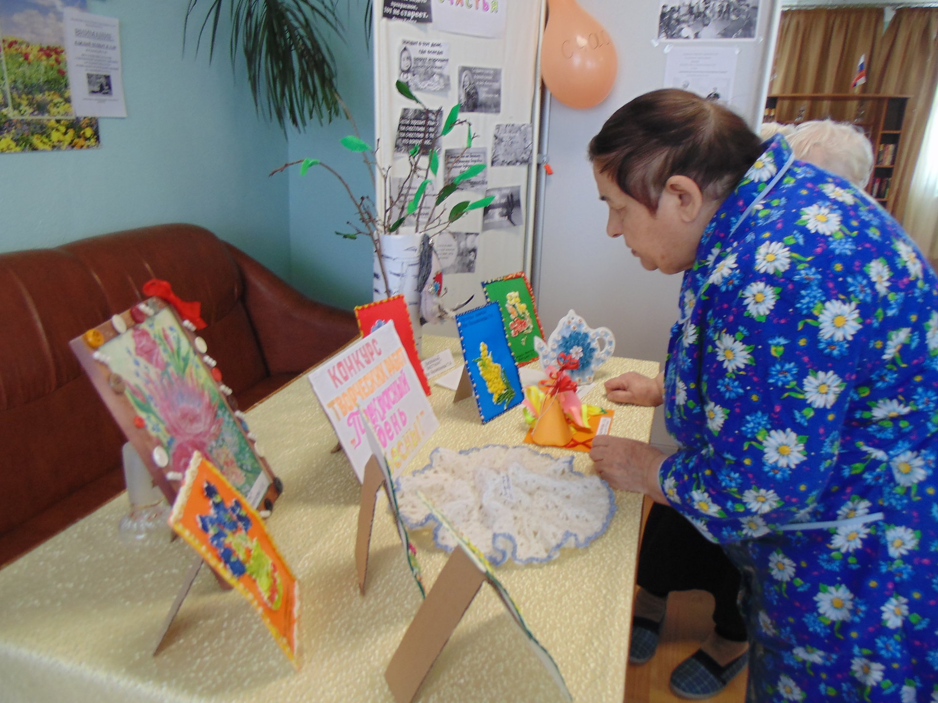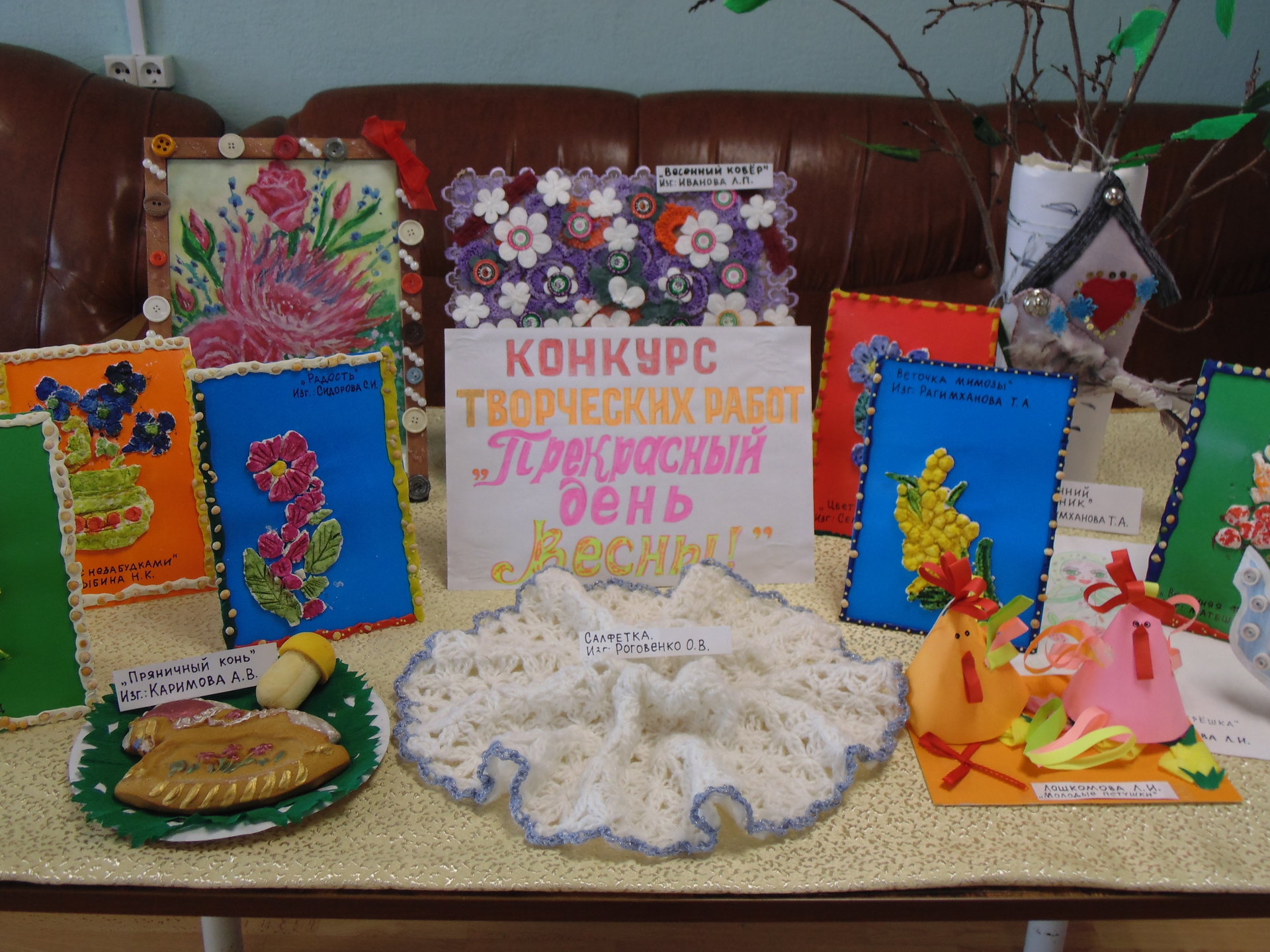 25 марта 2019 года в Оргтрудовском доме-интернате для престарелых и инвалидов были подведены итоги творческого конкурса «Прекрасный день Весны!» На выставке были представлены работы получателей социальных услуг. Среди экспонатов открытки весенних цветов, изготовленных из солёного теста на занятиях кружка «Своими руками!» Дополняет выставку композиция «Весенний вестник», представляющая собой ствол берёзы, на котором разместил свой домик грач. Также можно увидеть работу изобразительного искусства «Цветы», поделки из цветной бумаги и связанную крючком салфетку. Получатели социальных услуг приняли активное участие в конкурсе. Все работы отмечены подарочными дипломами. Выставка произвела на посетителей позитивное весеннее настроение!