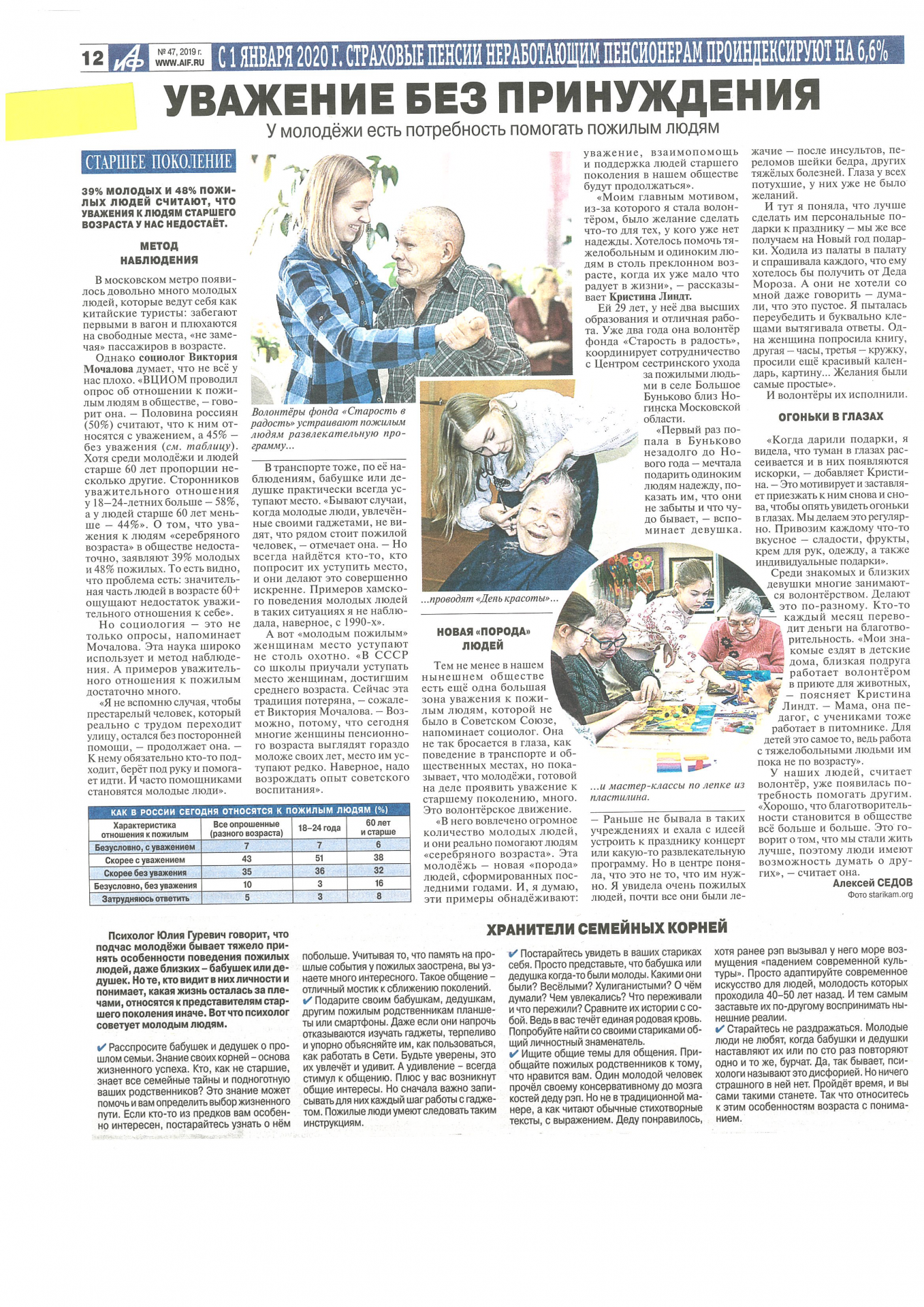 04 декабря 2019. Публикация в газете Аргументы и Факты (Владимир), № 47, 2019 год ч.2
