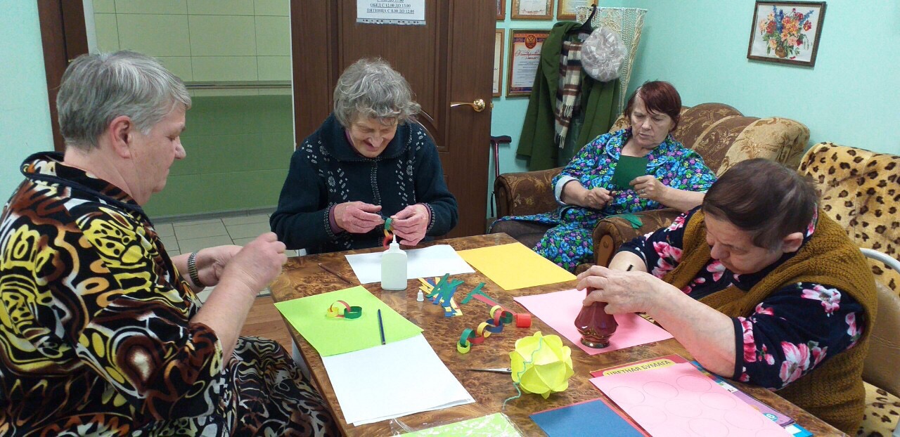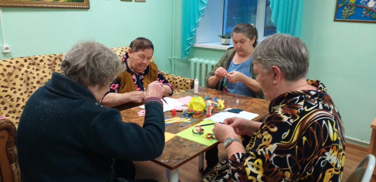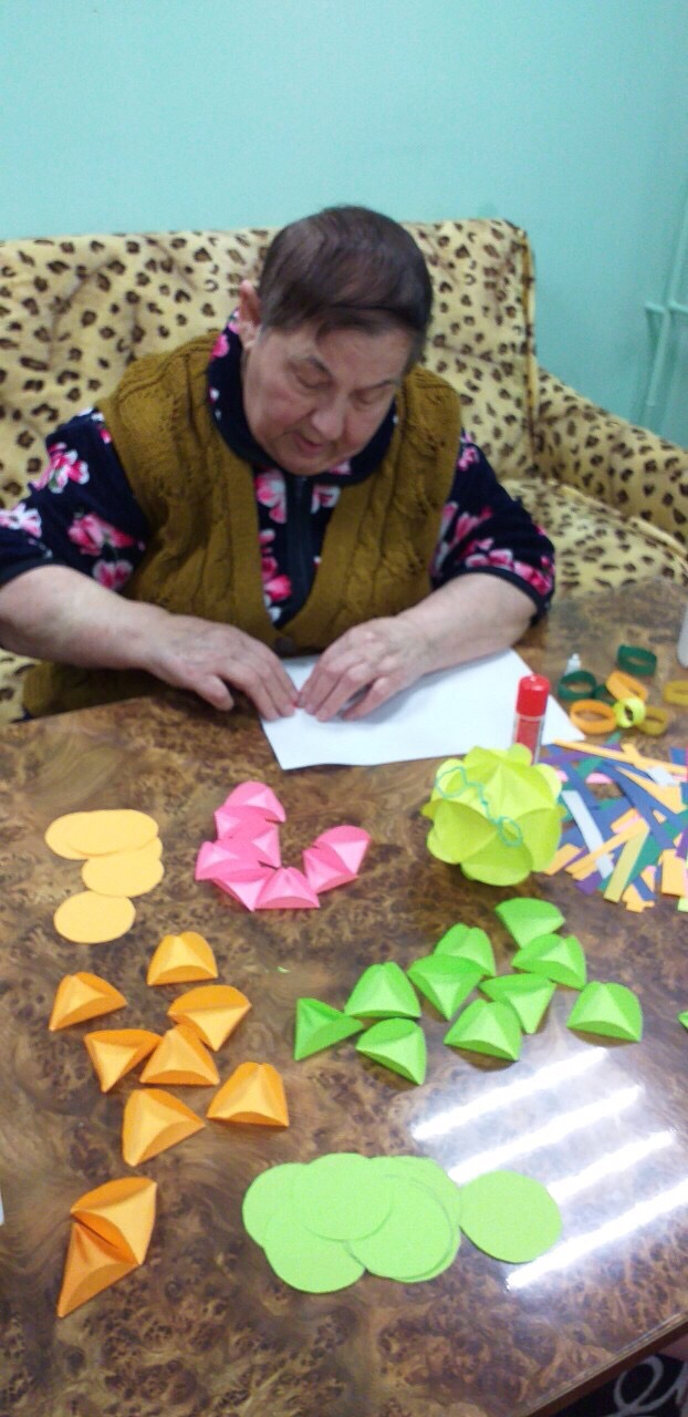 18 ноября 2019 года в Оргтрудовском доме-интернате для престарелых и инвалидов для получателей социальных услуг работала творческая мастерская «Своими руками». Присутствующие на занятии изготавливали новогодние украшения из бумаги под руководством культорганизатора Гайдуль А.В. Данный вид организации досуга проживающих вызвал огромный интерес.