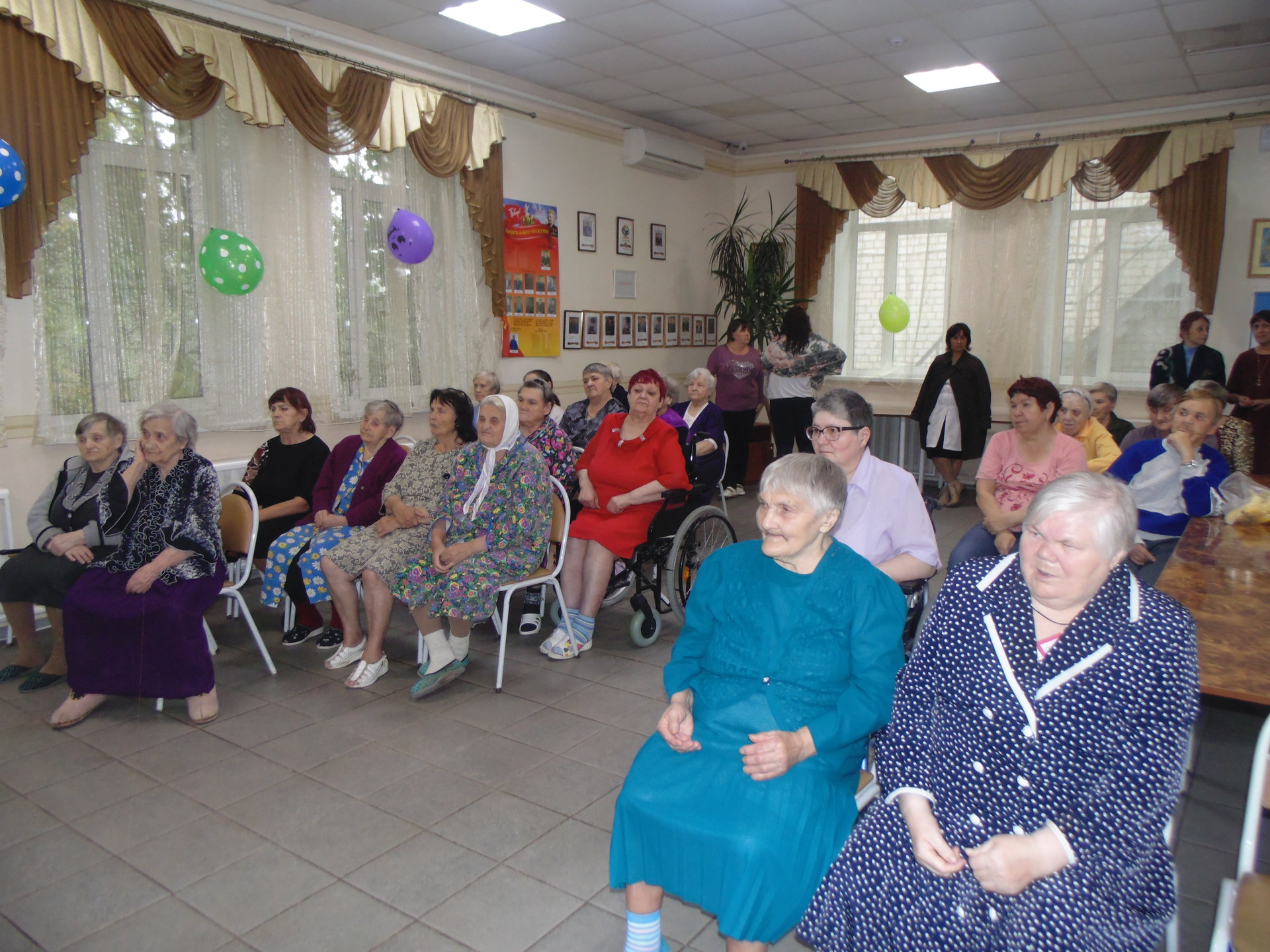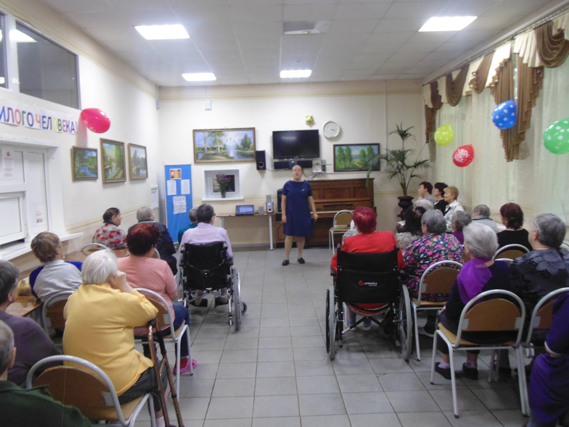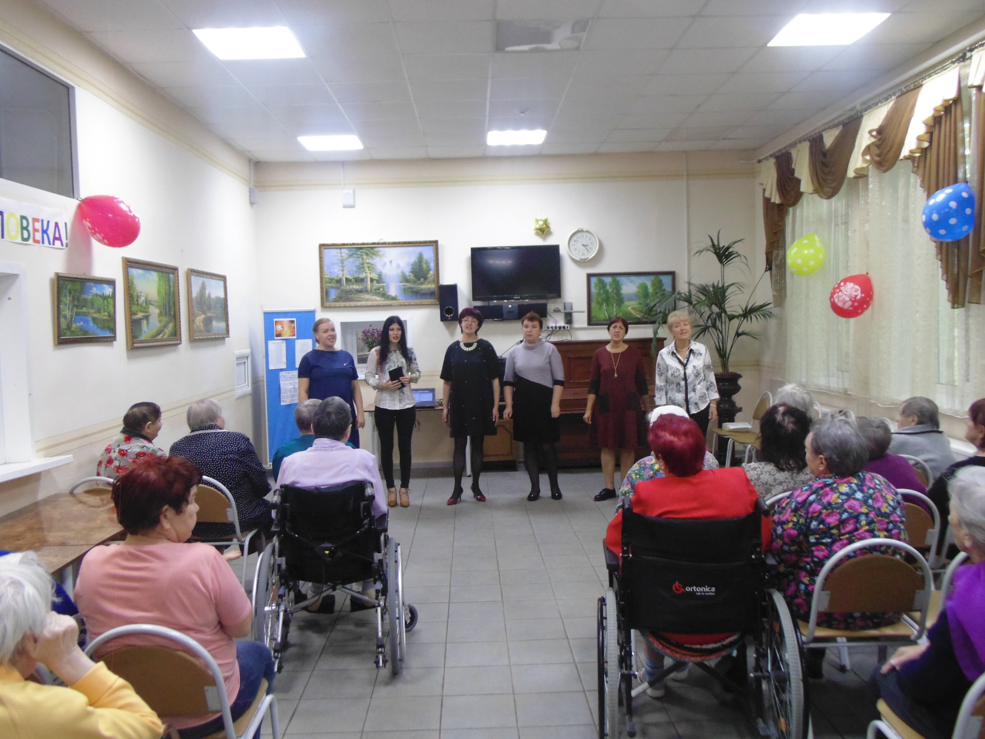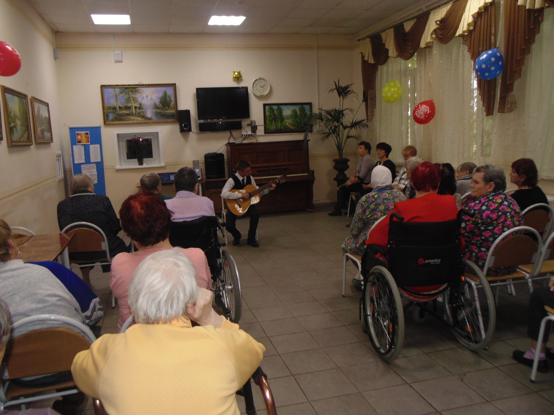 В рамках празднования Международного дня пожилого человека 3 октября 2018 поздравить получателей социальных услуг ГБУСОВО "Оргтрудовский дом-интернат для престарелых и инвалидов" пришли преподаватели и учащиеся МБУДО ДШИ №7 микрорайона Оргтруд города Владимира. В качестве поздравления они приготовили для получателей социальных услуг замечательную концертную программу «Пусть будет тёплой осень жизни». Юные артисты и их преподаватели исполнили душевные песни, сыграли для проживающих музыкальные произведения на гитаре и пианино. Зрители тепло приветствовали выступающих, и провожали номера искренними аплодисментами, а особенно приятным был тот факт, что выступали для них представители младшего поколения.