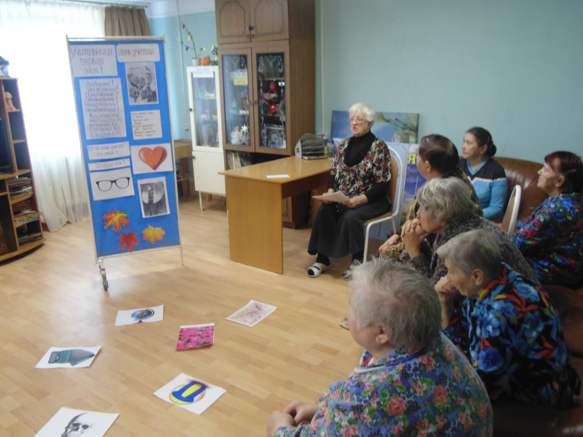 05 октября 2018 года библиотекарь Рагимханова Тамара Алексеевна провела с получателями социальных услуг в доме-интернате викторину "Учитель - профессия на века", посвящённую Дню знаний.
