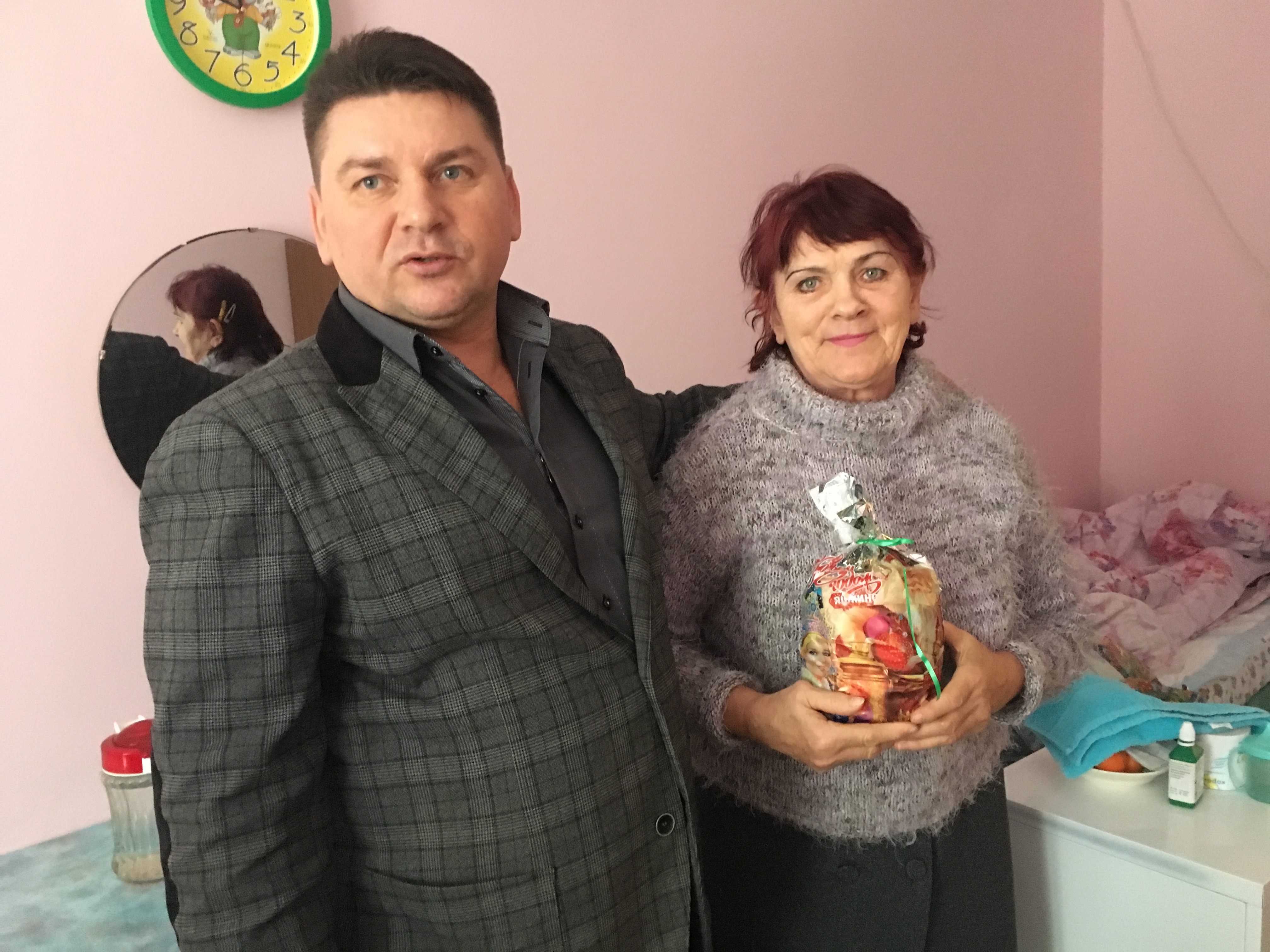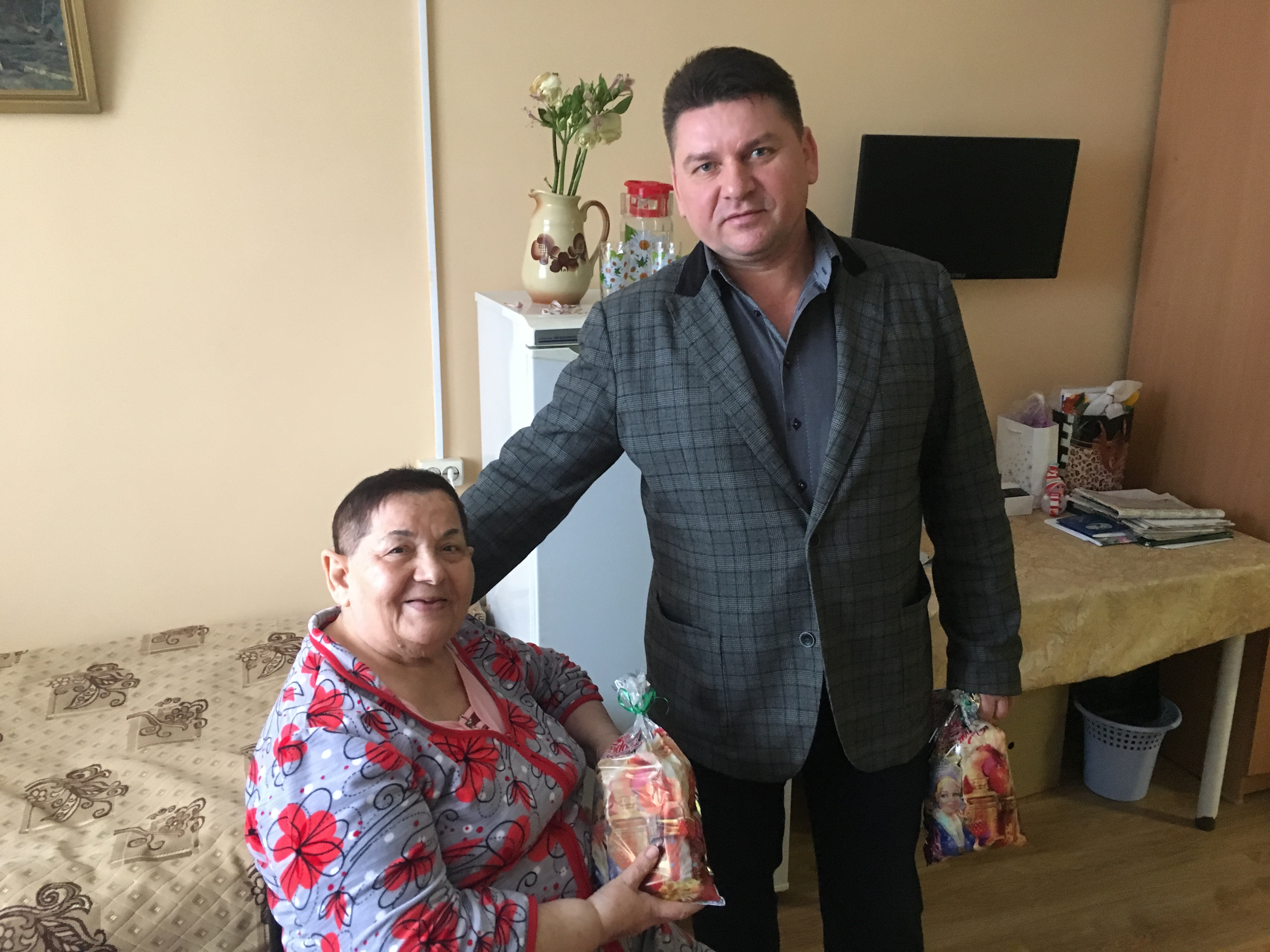 «…примите самые теплые и искренние поздравления с Новым годом! Желаю вам крепкого здоровья, благополучия и душевного спокойствия», – такими словами он поздравил всех получателей социальных услуг интерната и подарил им подарки.