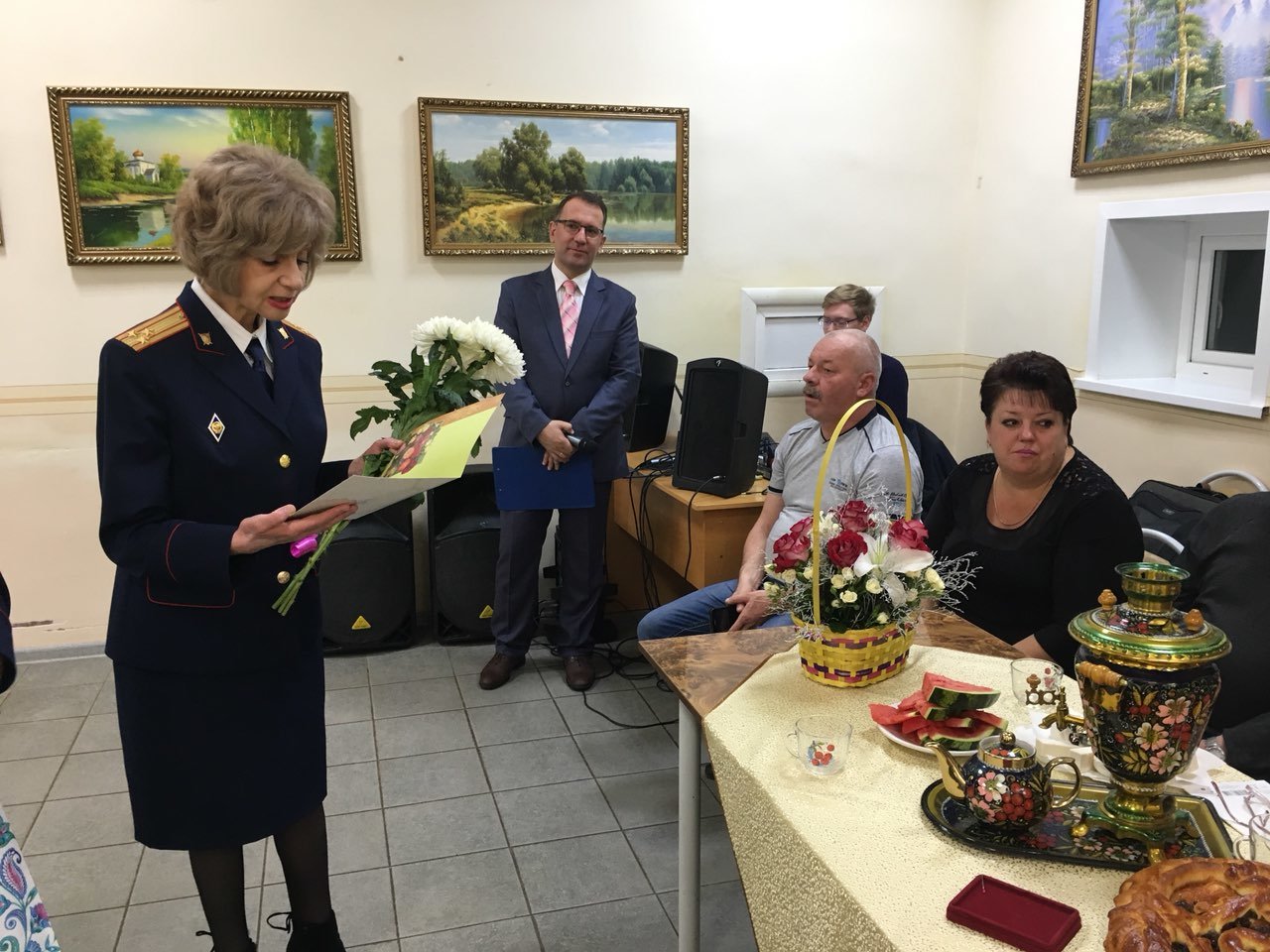 Так же именинницу поздравили Жукова Ирина Владимировна - Сотрудник отдела социальной защиты по Фрунзенскому району г. Владимира, Минина Ирина Александровна - Старший помощник руководителя следственного управления по взаимодействию со СМИ, полковник юстиции. Теплые поздравления прозвучали от сотрудников Управления Федерального казначейства по Владимирской области и директора дома-интерната Тарасенко Юрия Андреевича.