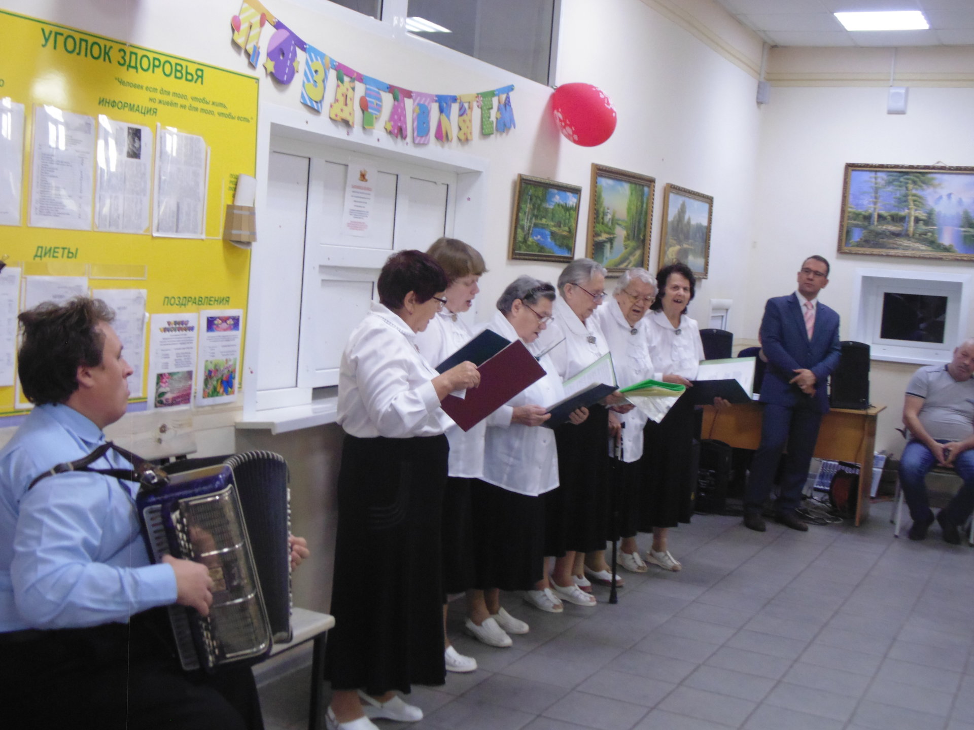 Воспитанники и педагоги ГКОУ ВО "Лухтоновская специальная (коррекционная) общеобразовательная школа-интернат» спели душевные песни и показали танцевальный номер для виновницы торжества . Провел концертную программу и поздравил своим выступлением директор дома культуры мкр. Оргтруд Артемьев Сергей Викторович. В завершении праздника прозвучали танцевальные мелодии 60-х и 70-х годов.