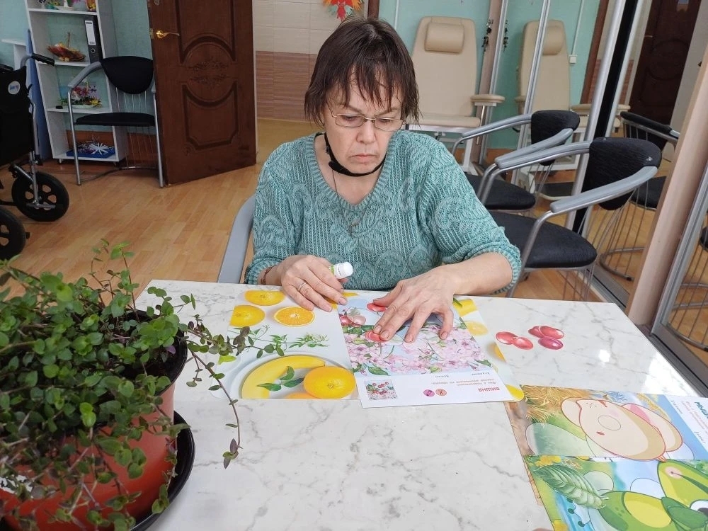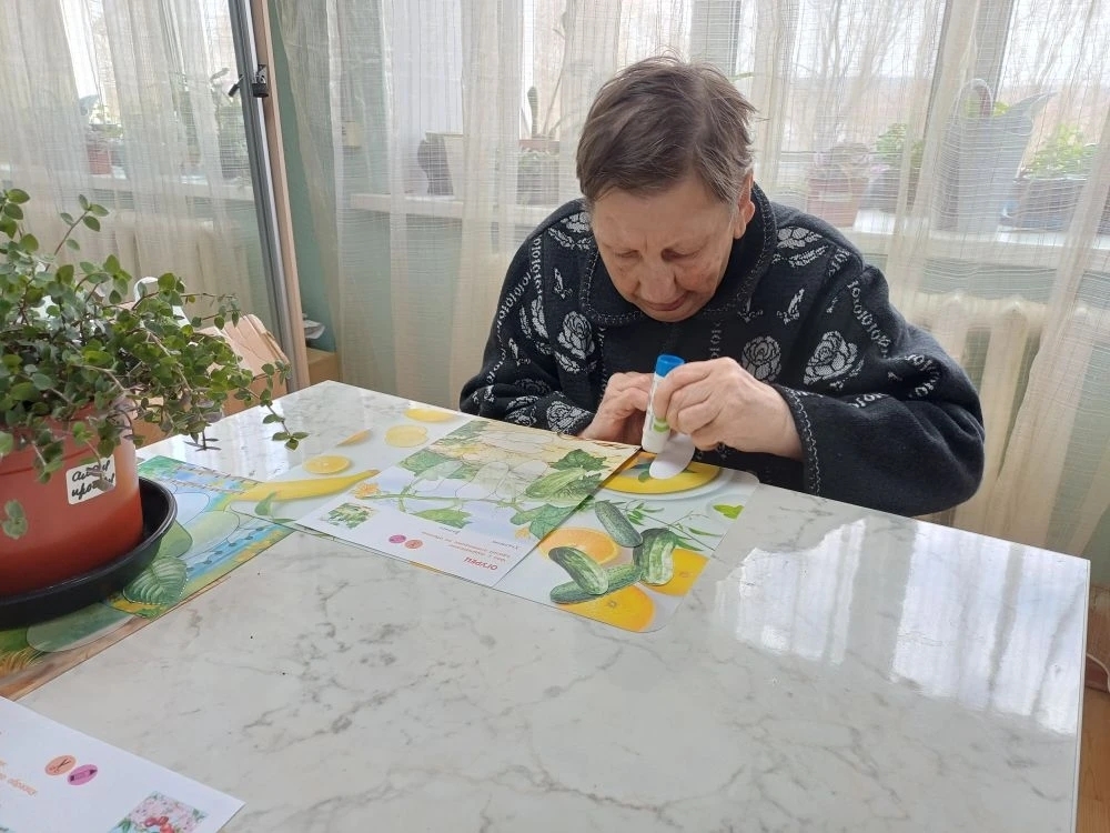 Сегодня, Ольга Александровна,инструктор по труду провела интересное занятие с проживающими на мелкую моторику рук с использованием аппликации.