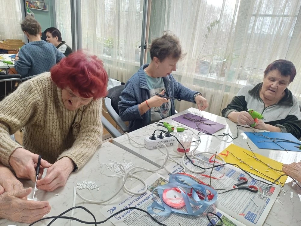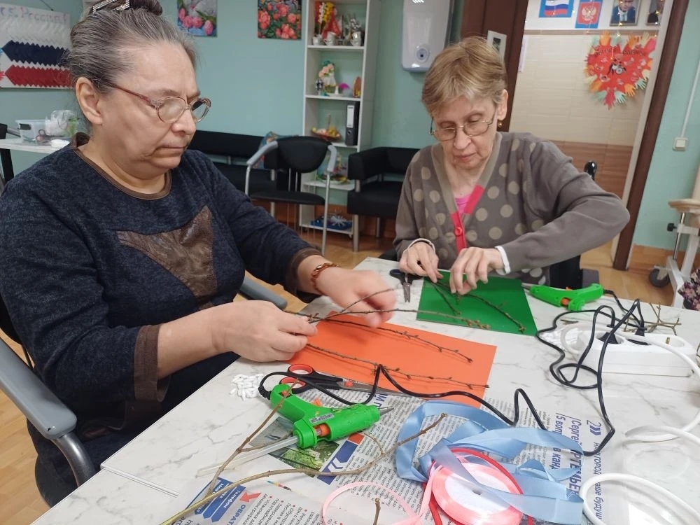 Для создания поделки понадобились тонкие веточки, картон, ножницы, клей, ленточки и ватные палочки. Занятие прошло активно и занимательно, каждый участник получил удовольствие от процесса творчества.