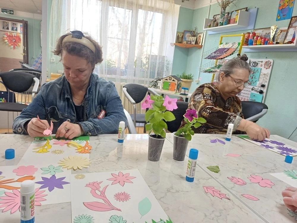 Сегодня под руководством инструктора по труду и проживающими прошел мастер-класс «Весенние композиции».
