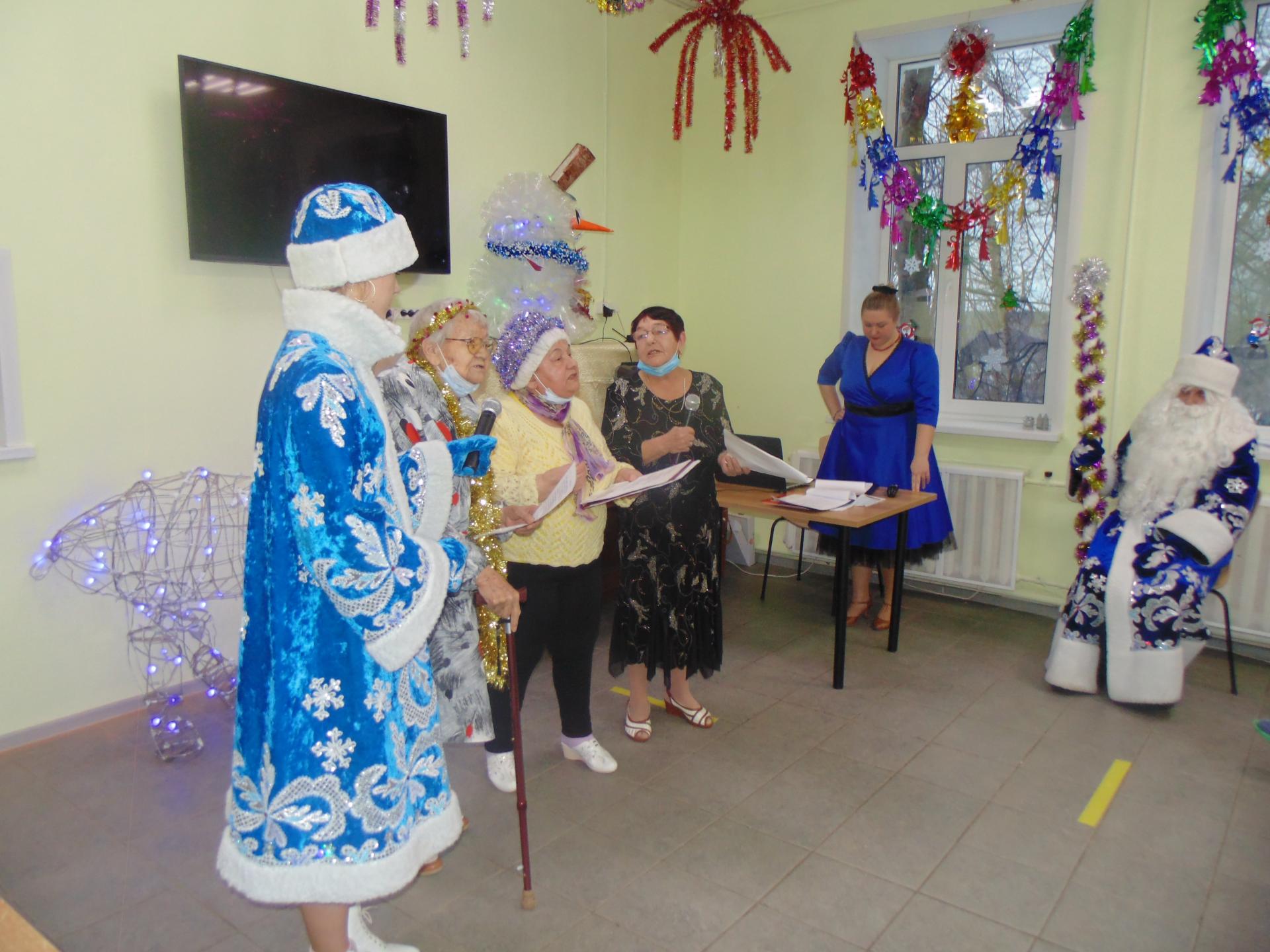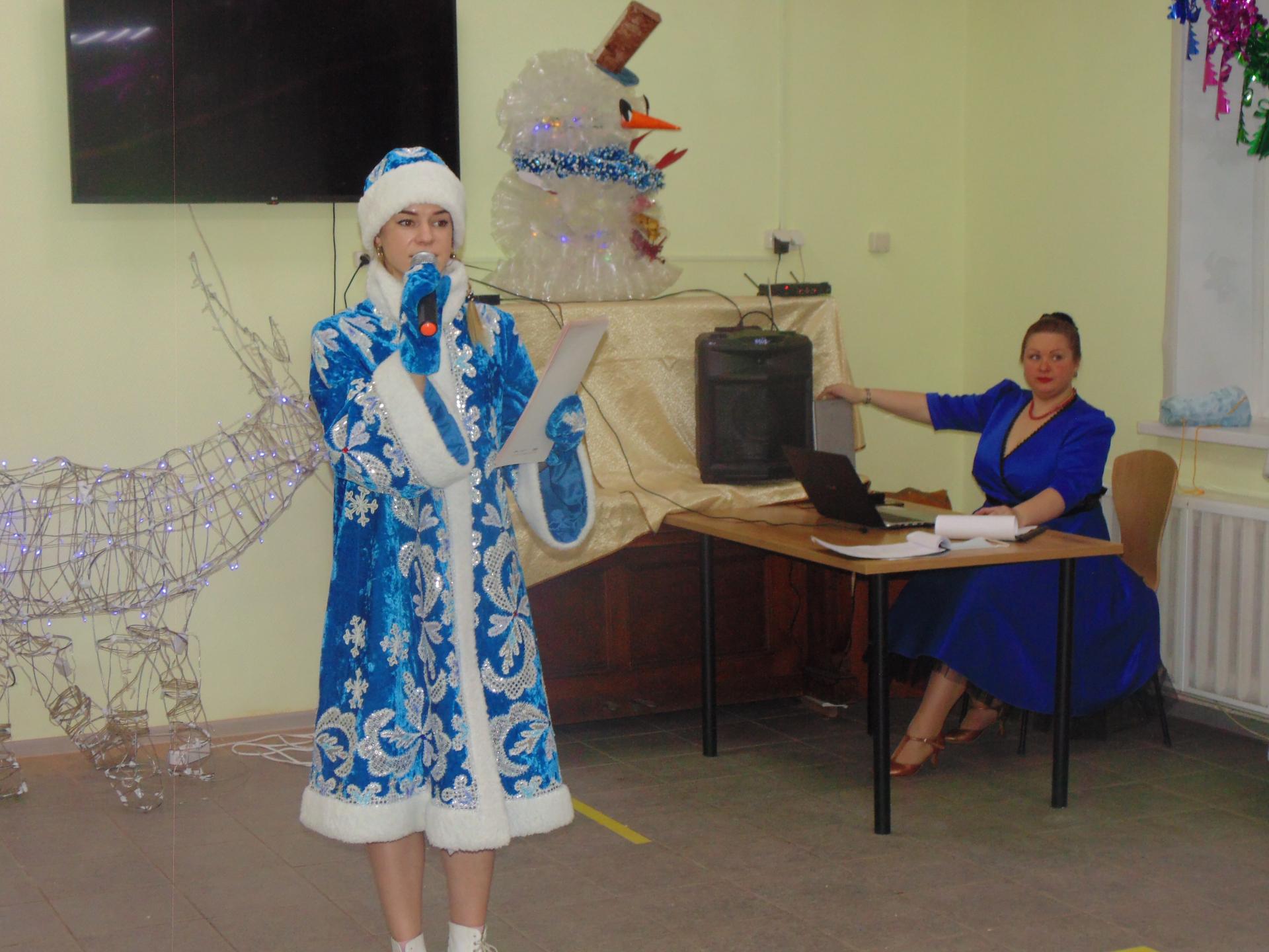 С огромным волнением и трепетом получатели социальных услуг готовились к этому празднику, учили стихи, песни, поздравления, мастерили новогодние поделки и игрушки! На сцене красовались поделки, сделанные получателями социальных услуг на занятиях арт-терапией с психологом – снеговик из пластиковых стаканчиков и огромный сияющий голубыми огоньками олень.