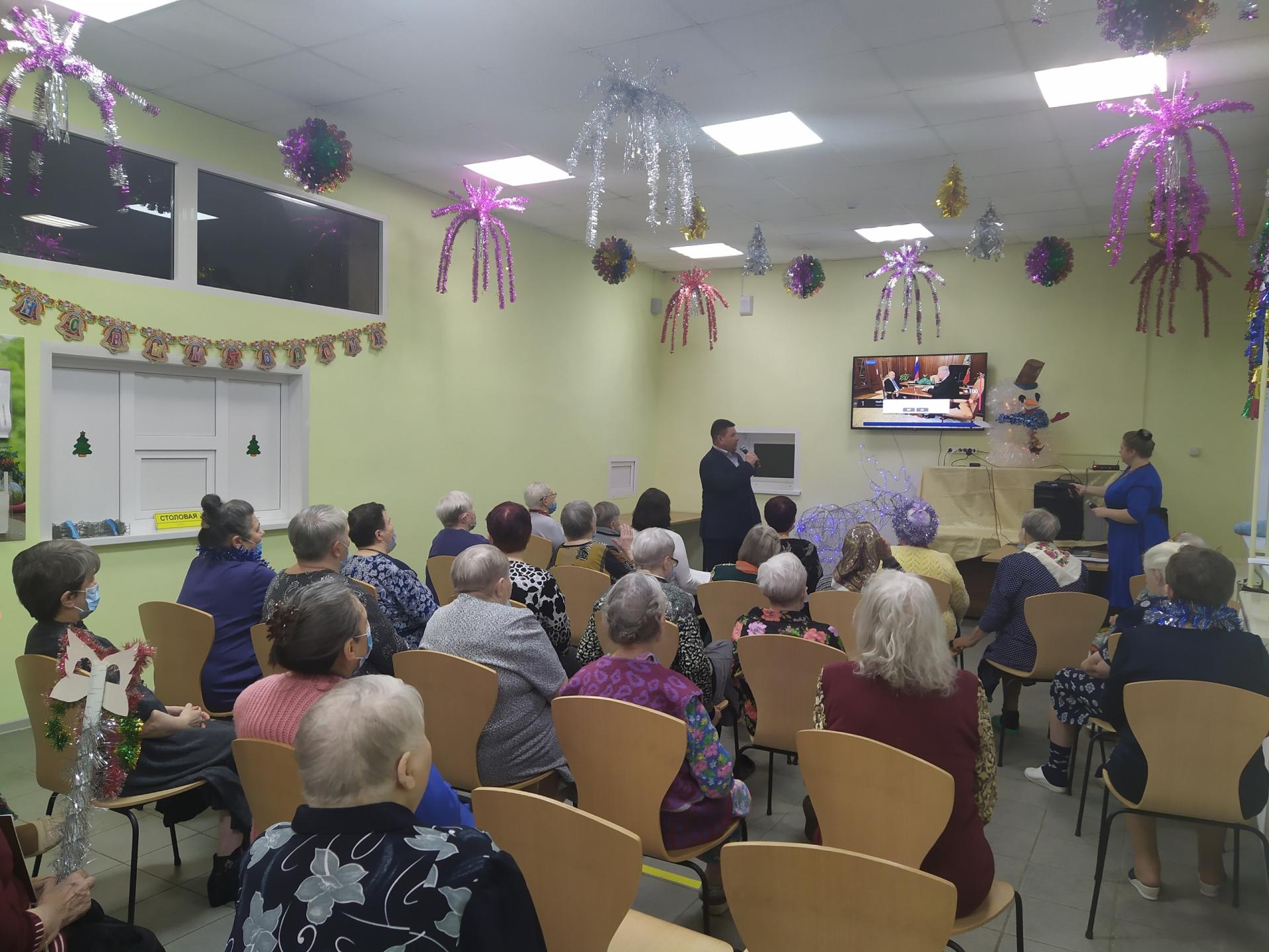С онлайн поздравлениями к получателям социальных услуг обратились артисты из Областного Дворца Культуры и искусства г. Владимира. К поздравлениям присоединился директор учреждения Ю.А. Тарасенко, а шоу-программа Деда Мороза и Снегурочки стала настоящим сюрпризом! Все гости получили незабываемые эмоции и сладкие подарки!